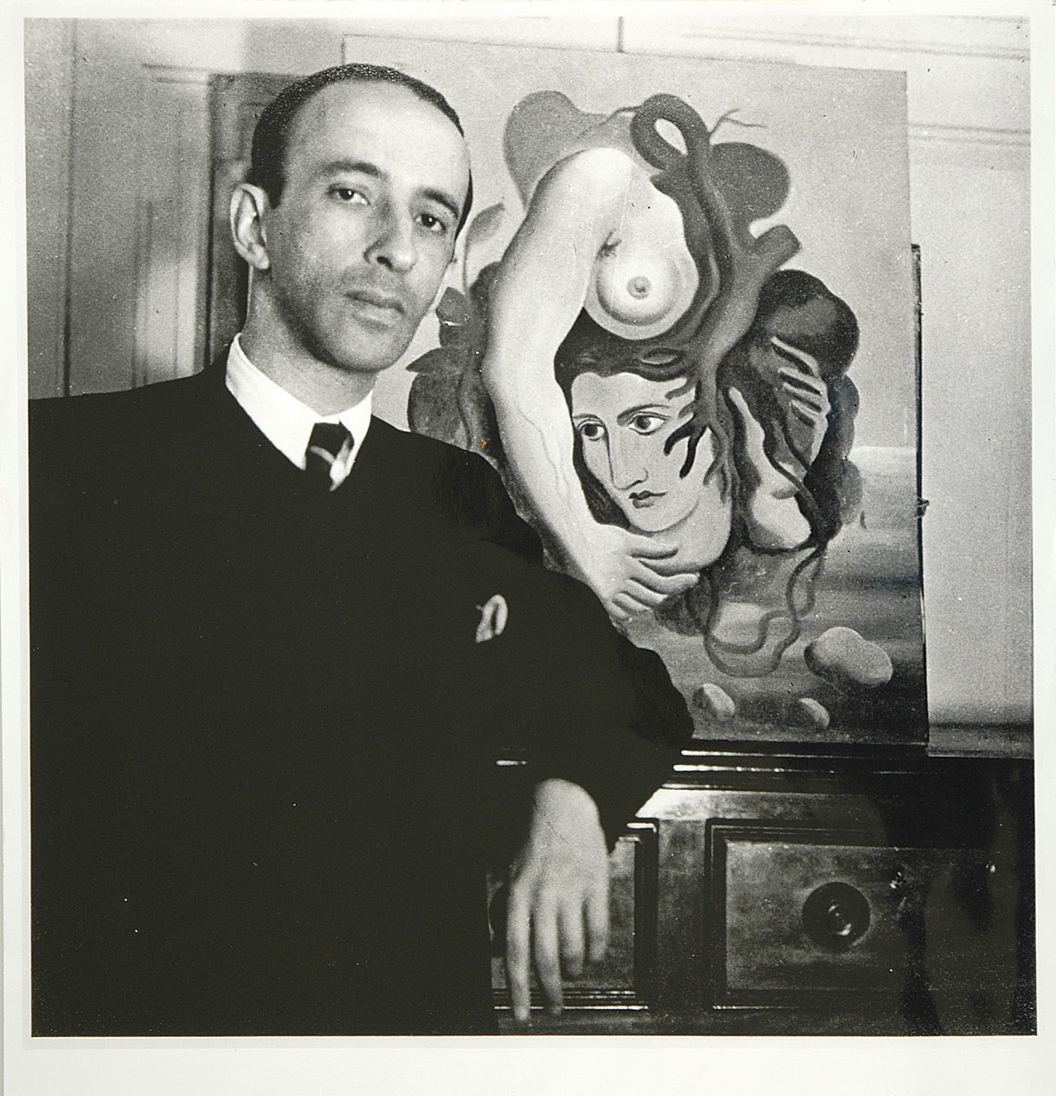 | Murilo Mendes, diante de Composição Surrealista, de Ismael Nery, 1929 |
